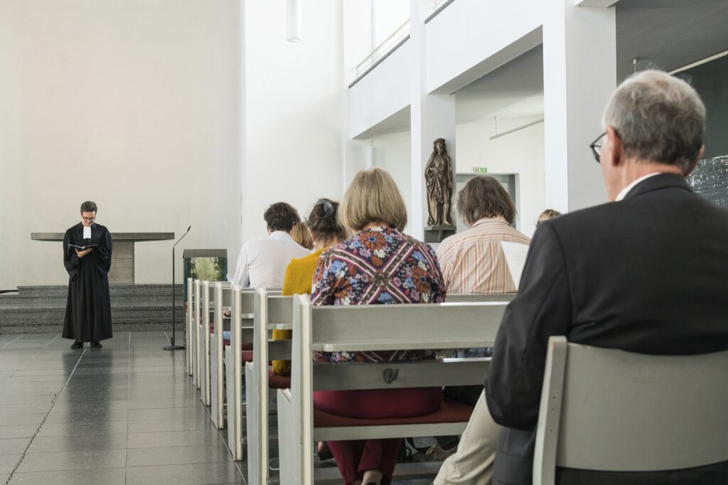Einmal im Quartal arbeiten Künstlerinnen und Künstler unterschiedlicher Disziplinen direkt mit an einer provisorischen gottesdienstlichen Form. Von einem konkreten Ausstellungsprojekt in der St. Matthäuskirche ausgehend werden die althergebrachten Formen der Liturgie in ungewohnte räumliche Zusammenhänge gestellt und öffnen neue Erfahrungsmöglichkeiten.