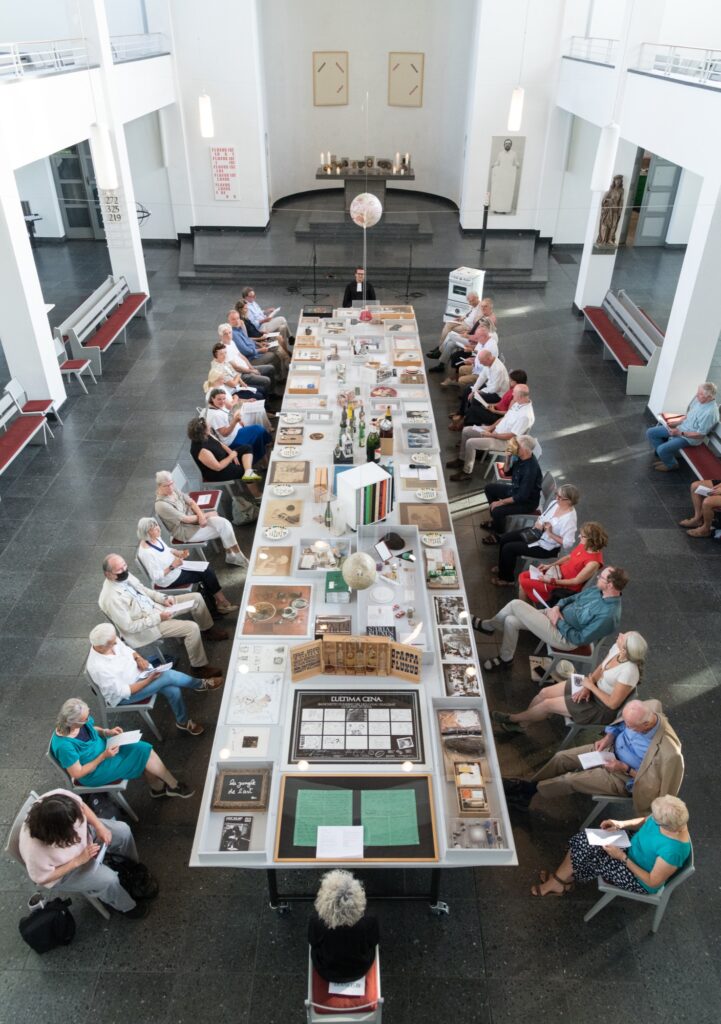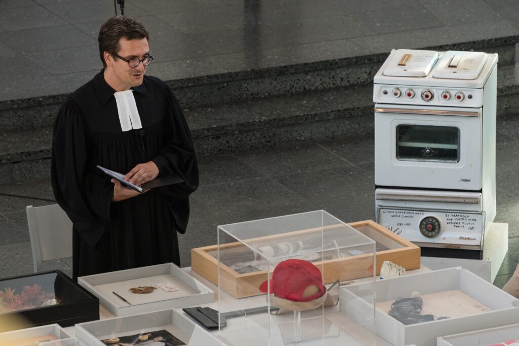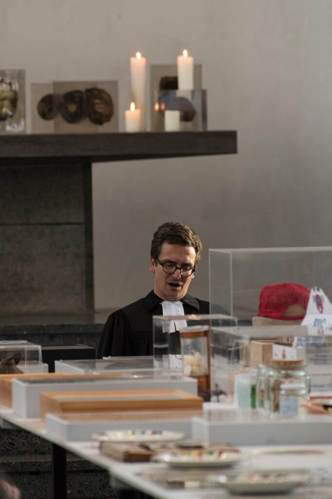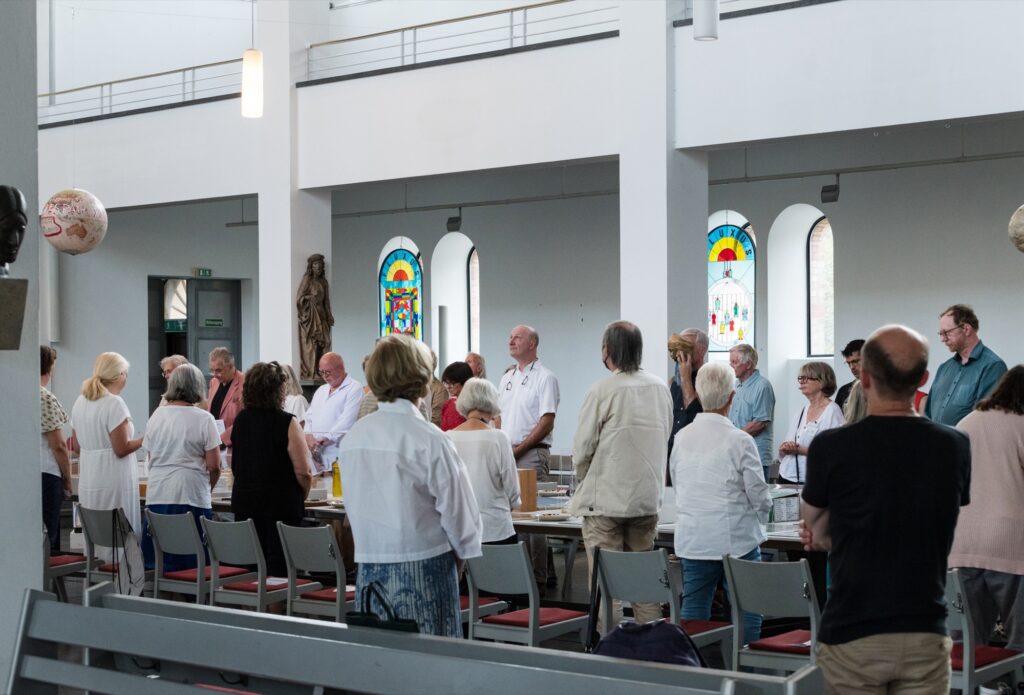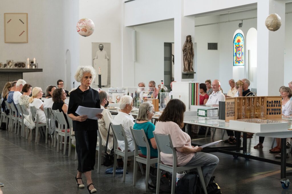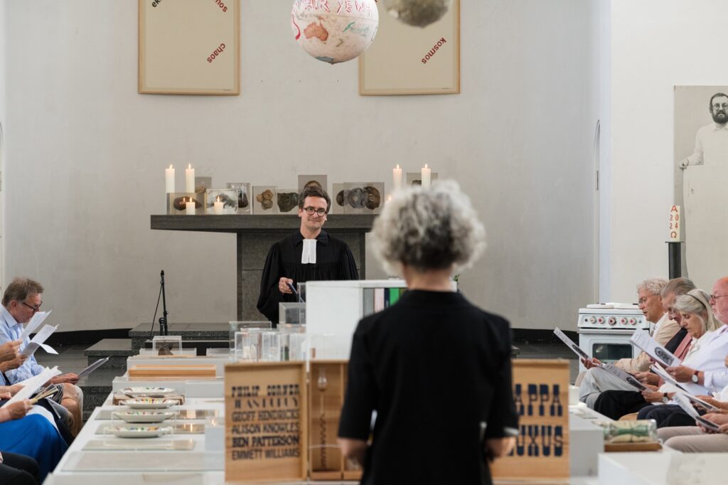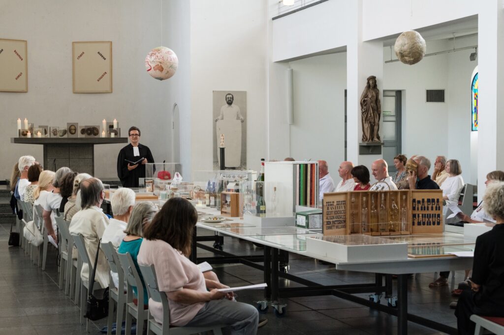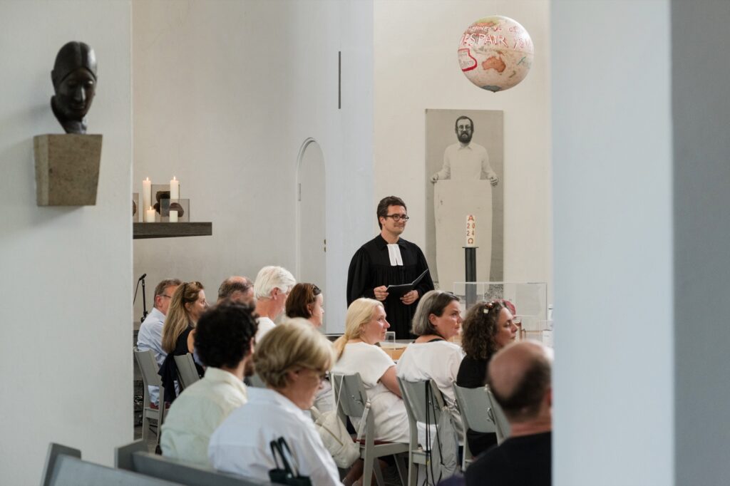 Einmal im Quartal arbeiten Künstlerinnen und Künstler unterschiedlicher Disziplinen direkt mit an einer provisorischen gottesdienstlichen Form. Von einem konkreten Ausstellungsprojekt in der St. Matthäuskirche ausgehend werden die althergebrachten Formen der Liturgie in ungewohnte räumliche Zusammenhänge gestellt und öffnen neue Erfahrungsmöglichkeiten.