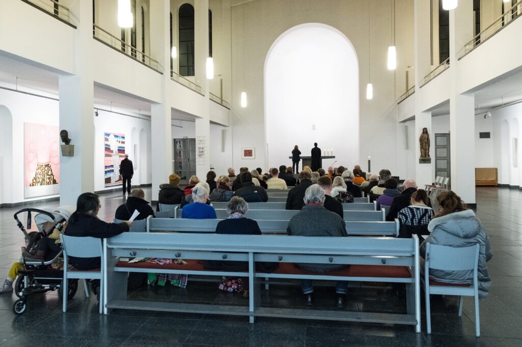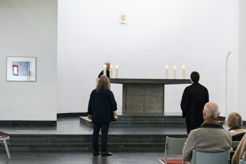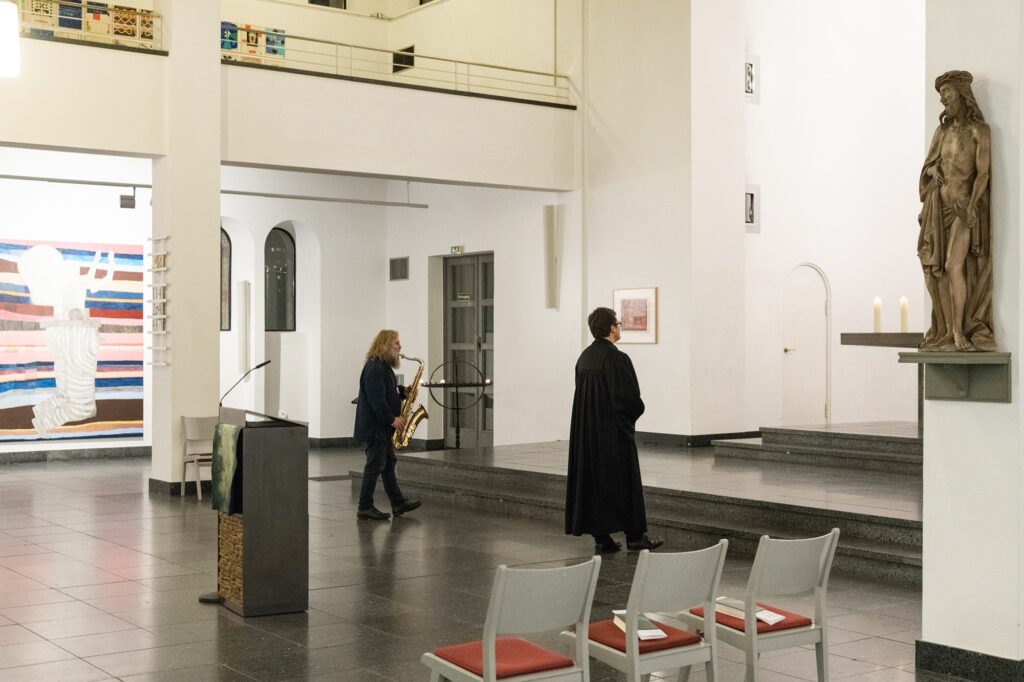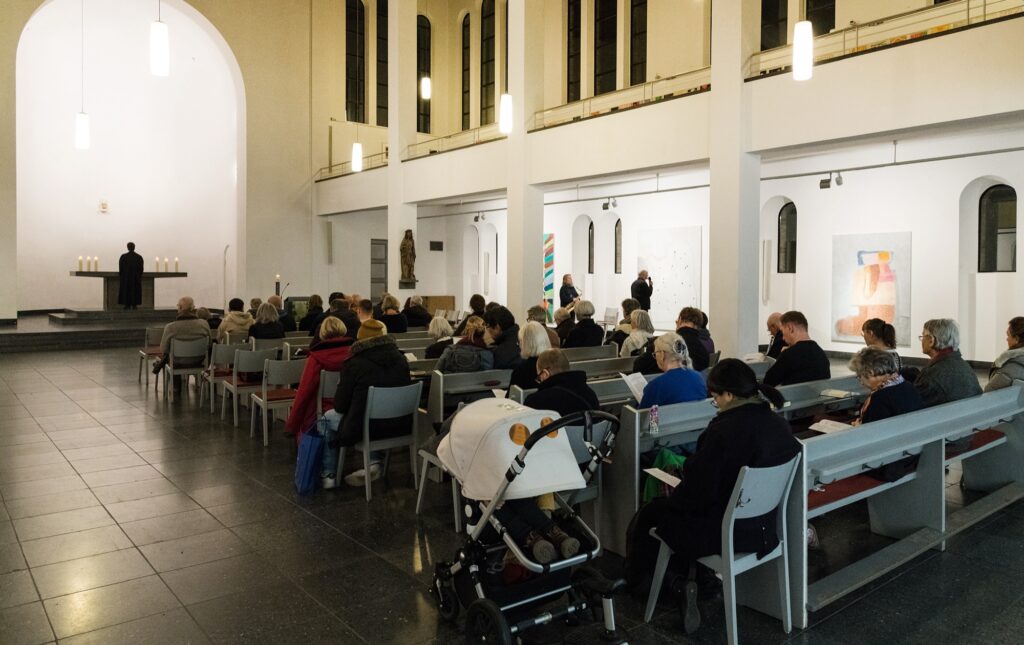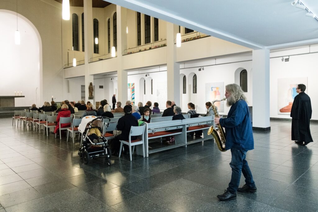 Einmal im Quartal arbeiten Künstlerinnen und Künstler unterschiedlicher Disziplinen direkt mit an einer provisorischen gottesdienstlichen Form. Von einem konkreten Ausstellungsprojekt in der St. Matthäuskirche ausgehend werden die althergebrachten Formen der Liturgie in ungewohnte räumliche Zusammenhänge gestellt und öffnen neue Erfahrungsmöglichkeiten.