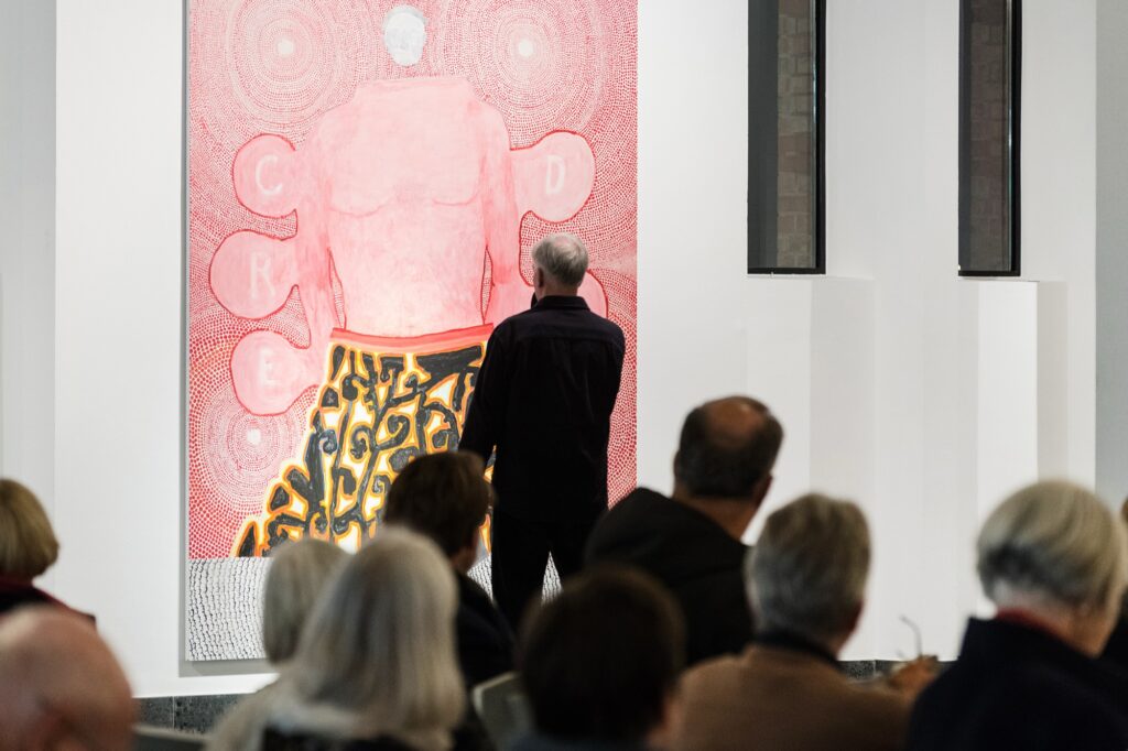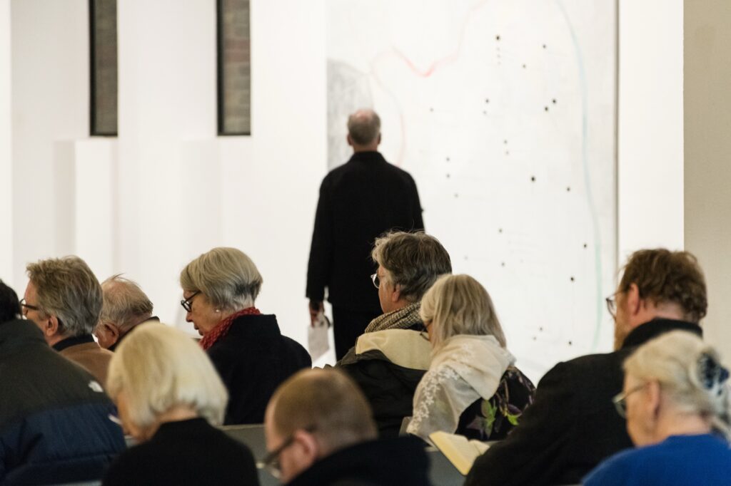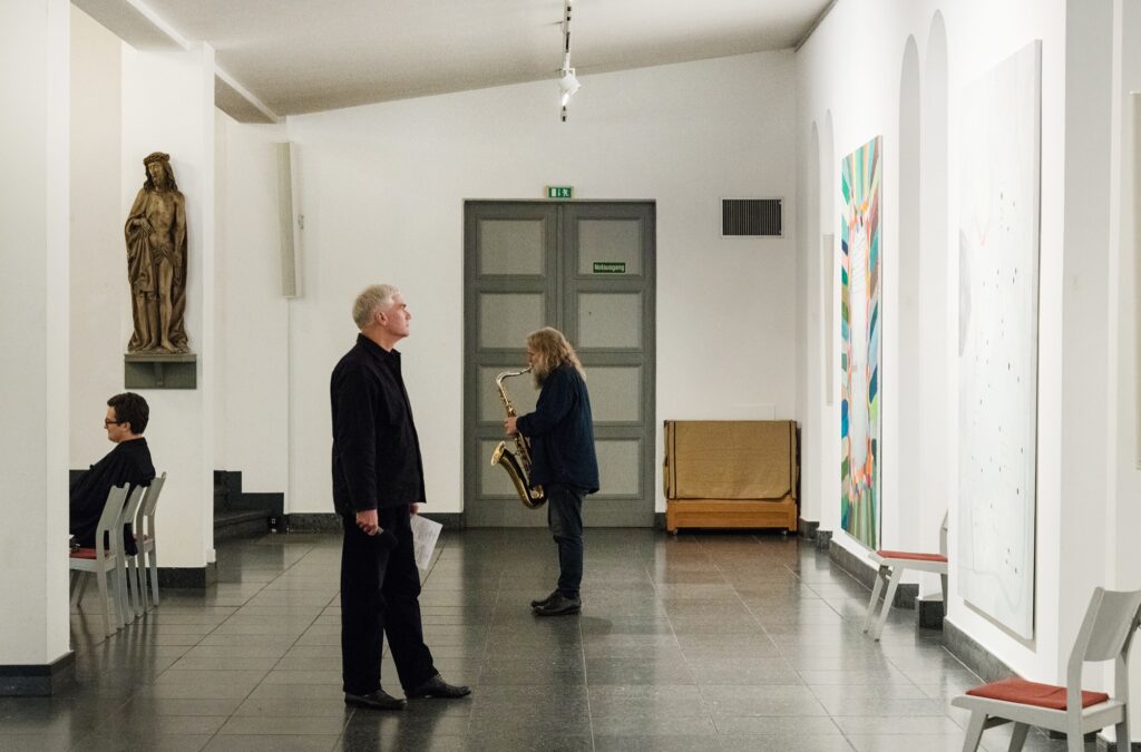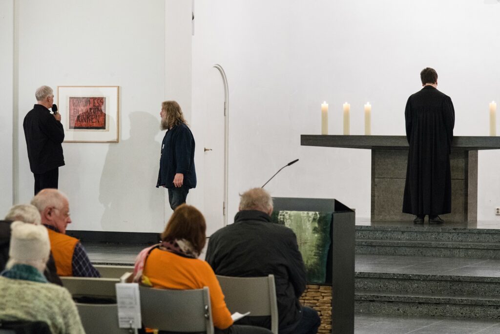 Einmal im Quartal arbeiten Künstlerinnen und Künstler unterschiedlicher Disziplinen direkt mit an einer provisorischen gottesdienstlichen Form. Von einem konkreten Ausstellungsprojekt in der St. Matthäuskirche ausgehend werden die althergebrachten Formen der Liturgie in ungewohnte räumliche Zusammenhänge gestellt und öffnen neue Erfahrungsmöglichkeiten.